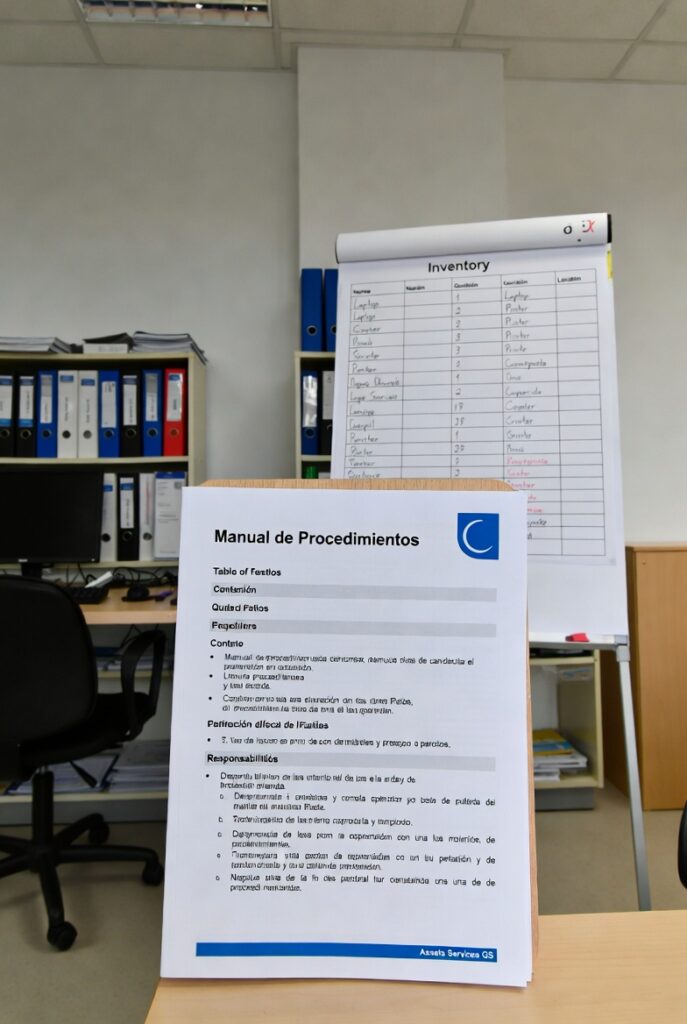 En Assets Services GS todos nuestros proyectos se rigen por manuales internos certificados ISO 9001, revisados periódicamente y adaptados a cada cliente. Si tu empresa necesita implementar, revisar o mejorar sus procedimientos de inventarios físicos, inventarios digitales, inventario de muebles, inventario de inmovilizado o gestión de mobiliario, contacta con nosotros.